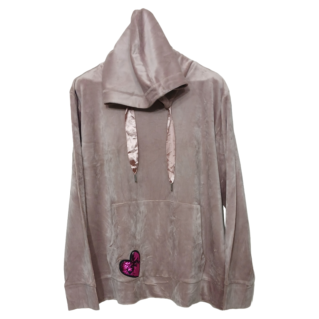 Beloved Pink With Heart Embroidery Kangaroo Pocket Hoodie | Valvet Fabric