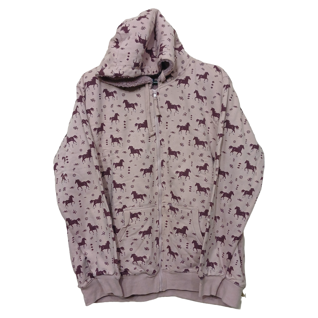 Blue Mountain Pink With Self Printed Zipper Hoodie