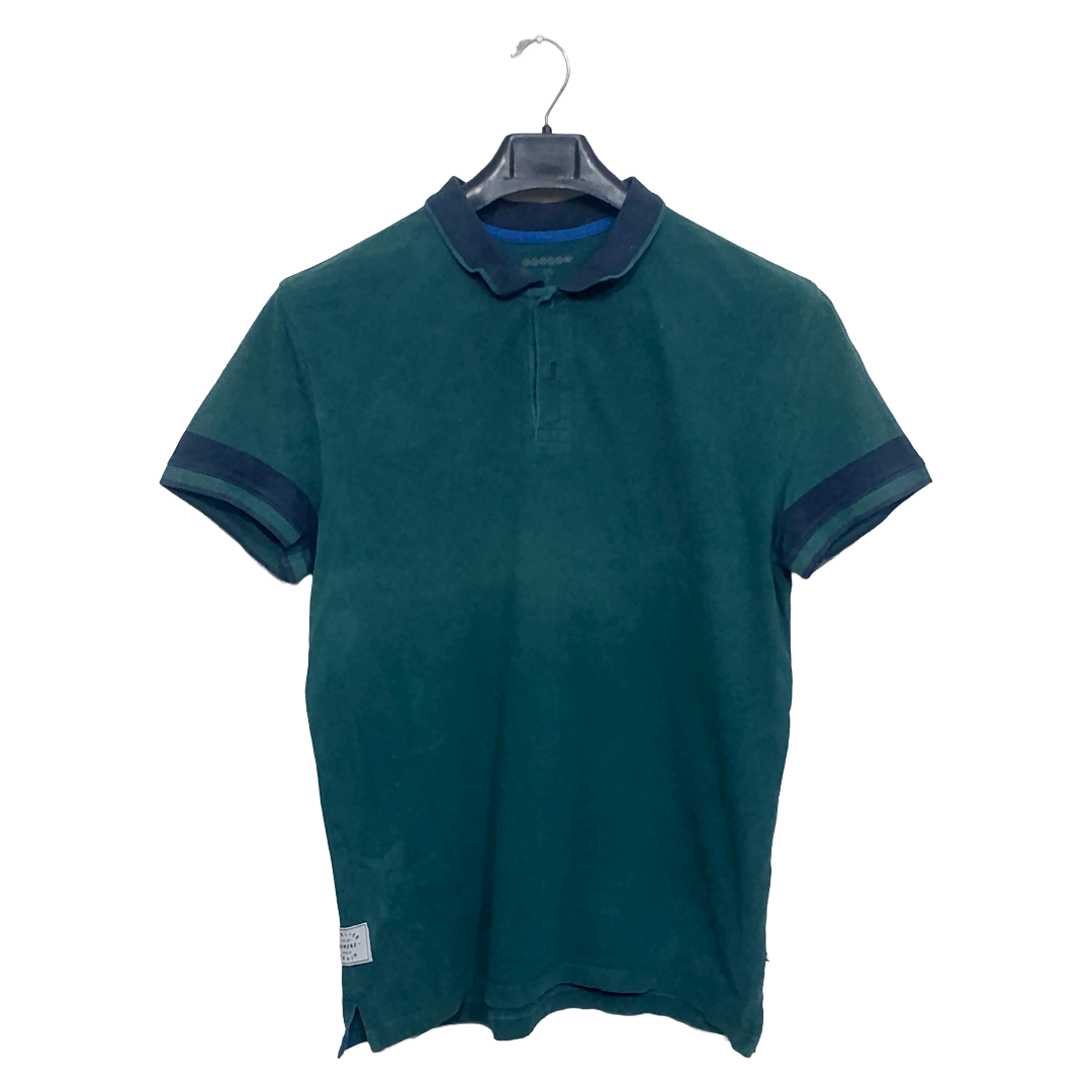 Bonobo Dull Green Faded Plain Half Sleeves Polo T Shirt | Cotton Jersey | Large
