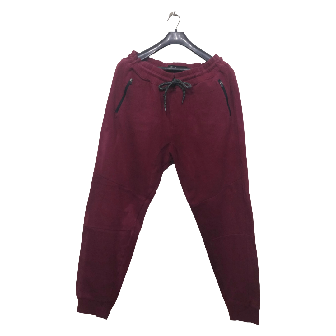 Brooklyn Maroon 2 Zipper Pockets Rib Bottom Trouser | Sweat Jersey