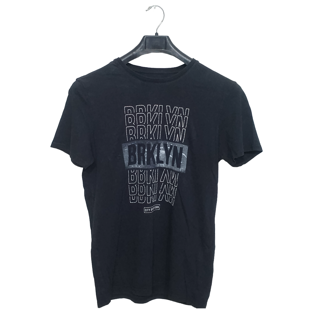 Kiabi Black Print Brklyn Printed Half Sleeves T Shirt | Cotton Jersey | Small