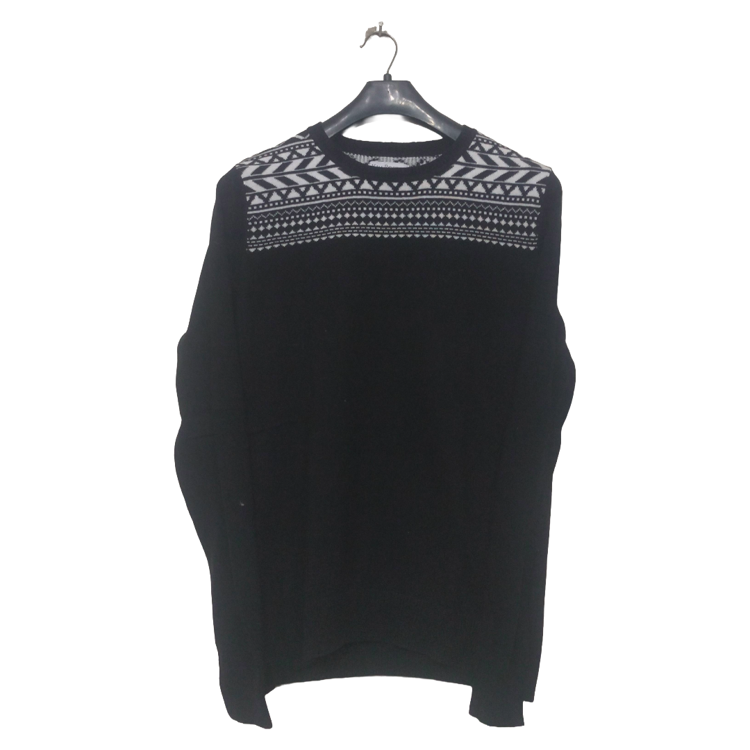 Kim Roger Black With White Neck Print Sweater | Woolen Jersey | High Quality Premium