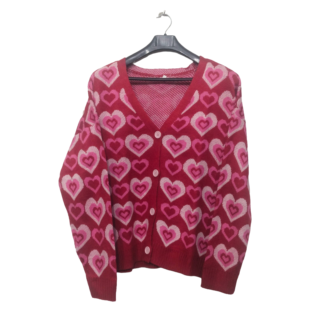 Maurices Red With Hearts Printed Front Button Open Sweater | Woolen Fabric| High Quality Premium | Short Length