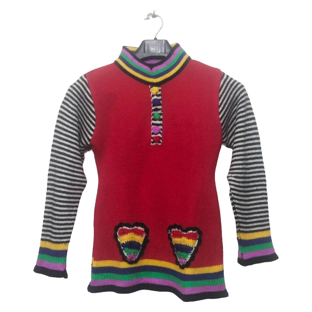 Overtake Red With Multicolor Sweater | Woolen Fabric | High Quality Premium