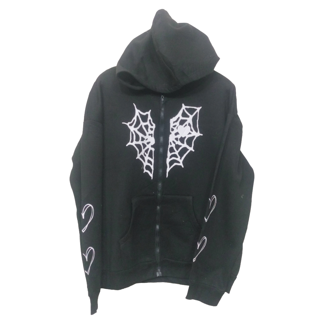 Shein Spider Web Printed Kangaroo Pocket Zipper Hoodie